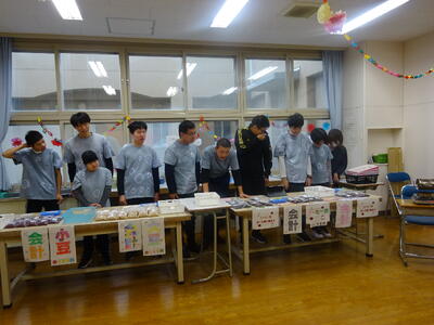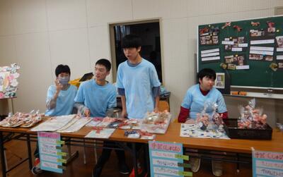 11月14日(金)、高等部の文化祭が開催されました。保護者の皆様におかれましては、来校していただき、ありがとうございました。12日(水)にオープニングイベントが行われ、各学年の作業で製作した商品を紹介したり、文化祭に向けて抱負を発表したり、音楽で練習したダンスを披露したり、特技を披露したり…楽しい時間を過ごし、気分が盛り上がったところでの文化祭でした。自分たちが作った製品を上手にアピールし、完売御礼が目立ちました。ご家庭で、買った製品をぜひご活用ください。