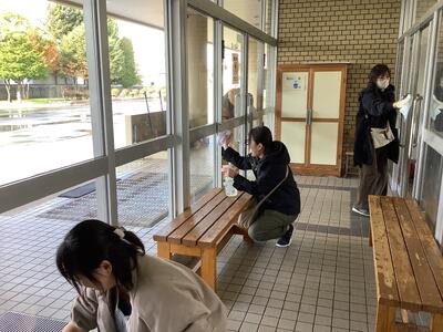 小中学部の南養祭、高等部の文化祭を控えた10月27日(月)、PTA窓ガラス清掃が行われました。夏の間に汚れて曇っていた小中学部玄関、渡り廊下、高等部玄関などの窓ガラスを、ピカピカに拭き上げていただきました。窓ガラスだけでなく、ほこりが積もった窓枠や桟の部分もきれいに拭いていただき、とてもきれいになりました。光が通り、ガラスが透明になったので、玄関も廊下も、気持ちも明るくなりました。