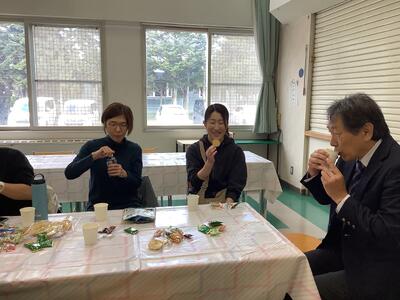 清掃終了後は、寄宿舎食堂での茶話会を行い、温かい紅茶とお菓子をいただきながら、学部を越えた情報交換・交流の機会となりました。お忙しい中、お集まりいただき、どうもありがとうございました。