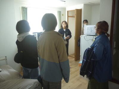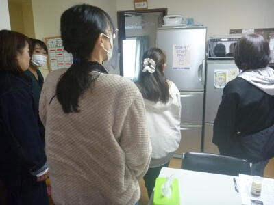 3か所といっても一軒家タイプ、寮タイプ、アパートタイプと三者三様でした。また利用者も一般就労している方や、A型・B型のに通われている方など様々でした。どちらの事業所も丁寧に説明してくださり、そして見学することで知識が深まったと、役員のみなさまの感想がありました。詳しくは、後日「会報あゆみ」に掲載予定です。